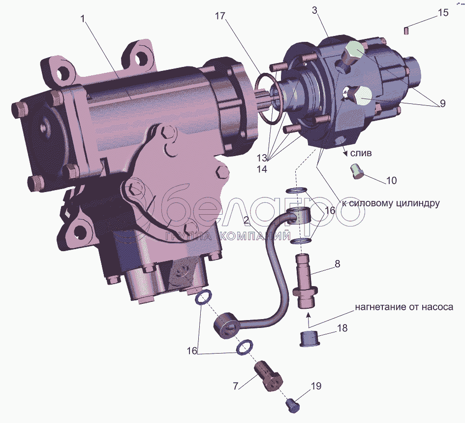 Каталог запасных частей к технике: МАЗ-631019. Рулевой механизм с распределителем 64221-3400010-10