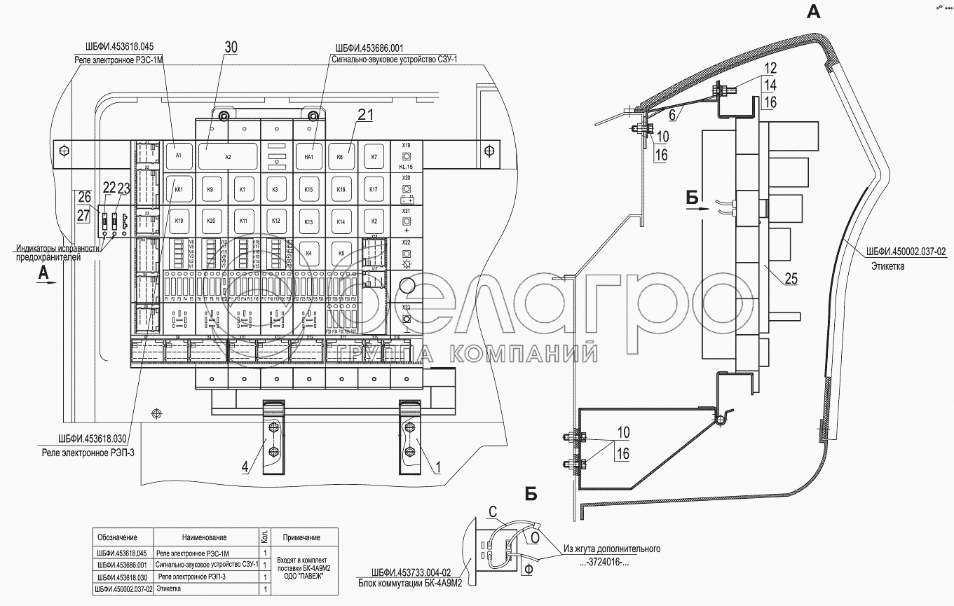 Каталог запасных частей к технике: МАЗ-631019. Установка БКА-N4 6430А9-3700110-000