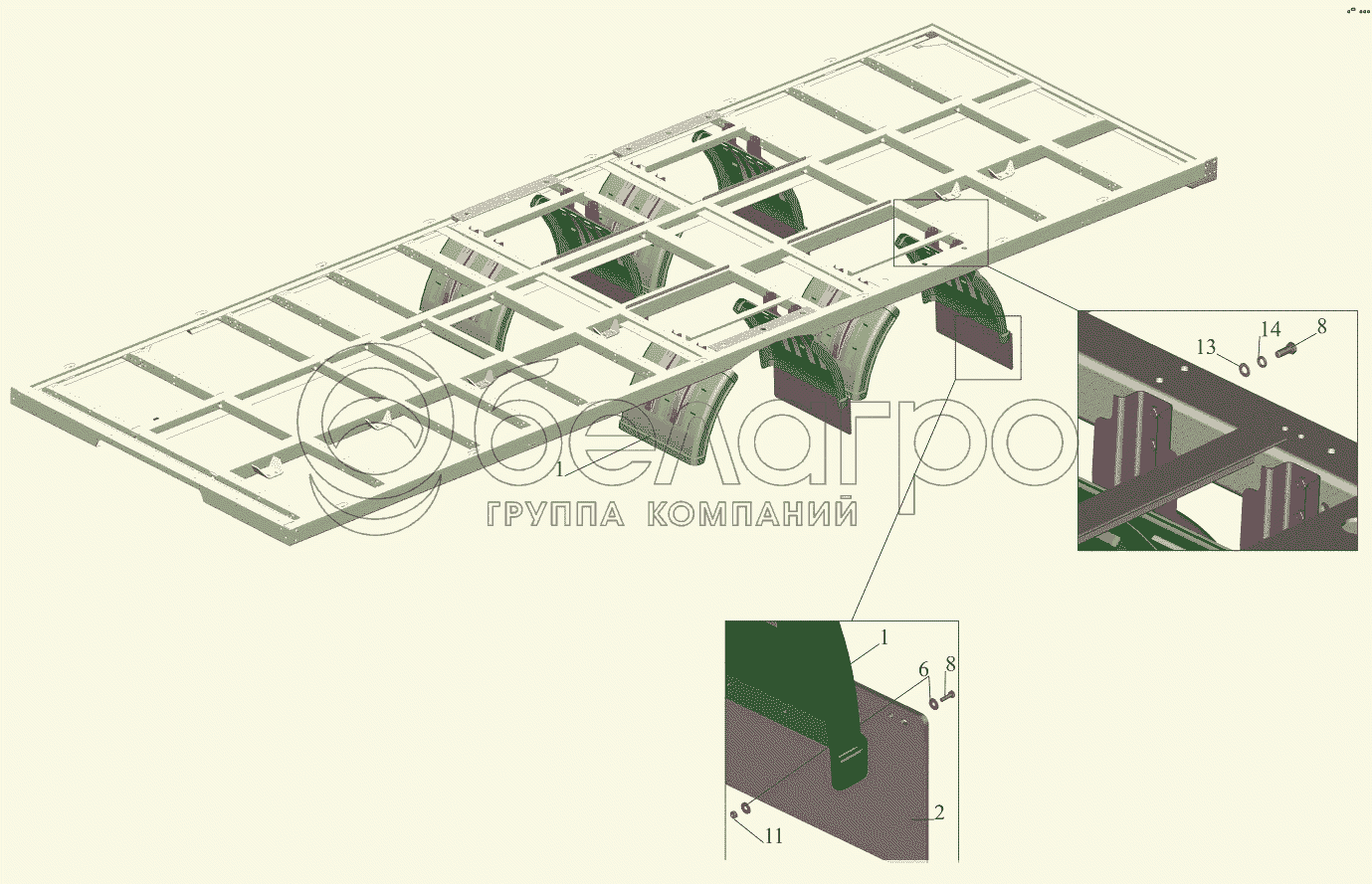 Каталог запасных частей к технике: МАЗ-631019. Установка брызговиков 6310E9-8500048