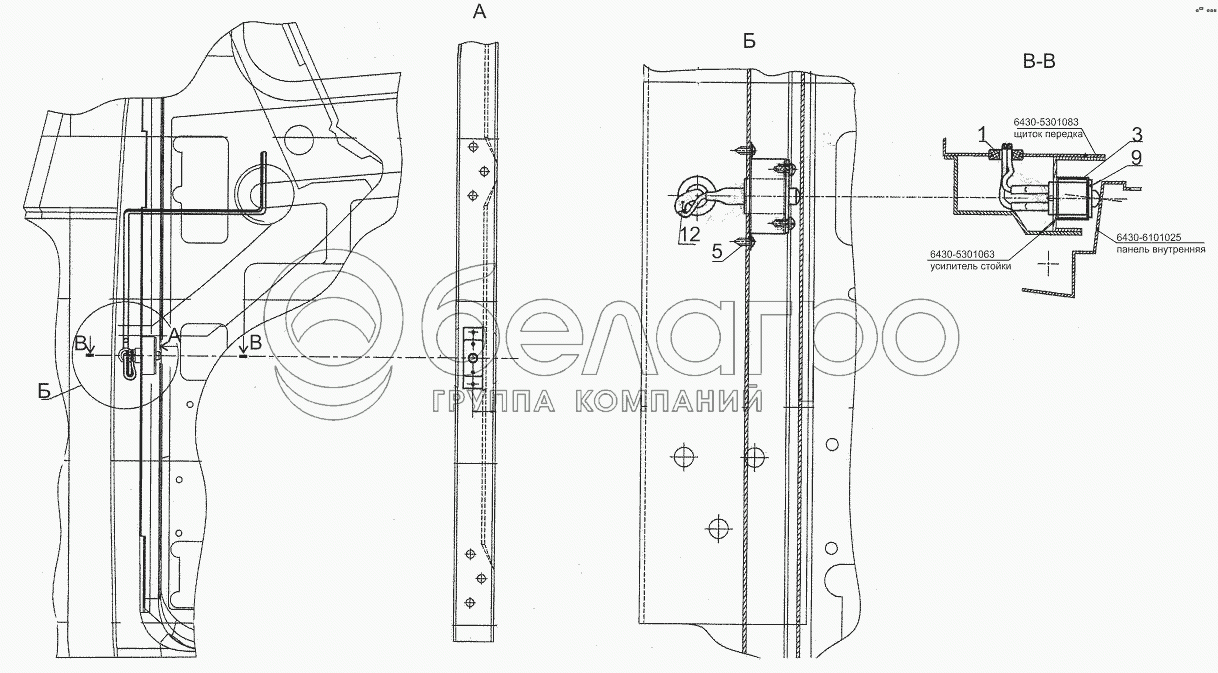 Каталог запасных частей к технике: МАЗ-631019. Установка датчика открытой двери 6430-3700218-010