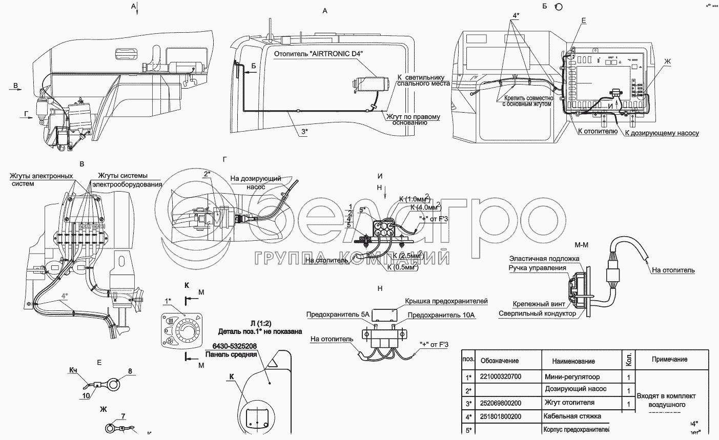 Каталог запасных частей к технике: МАЗ-631019. Установка электрооборудования отопителя 6430-3700088