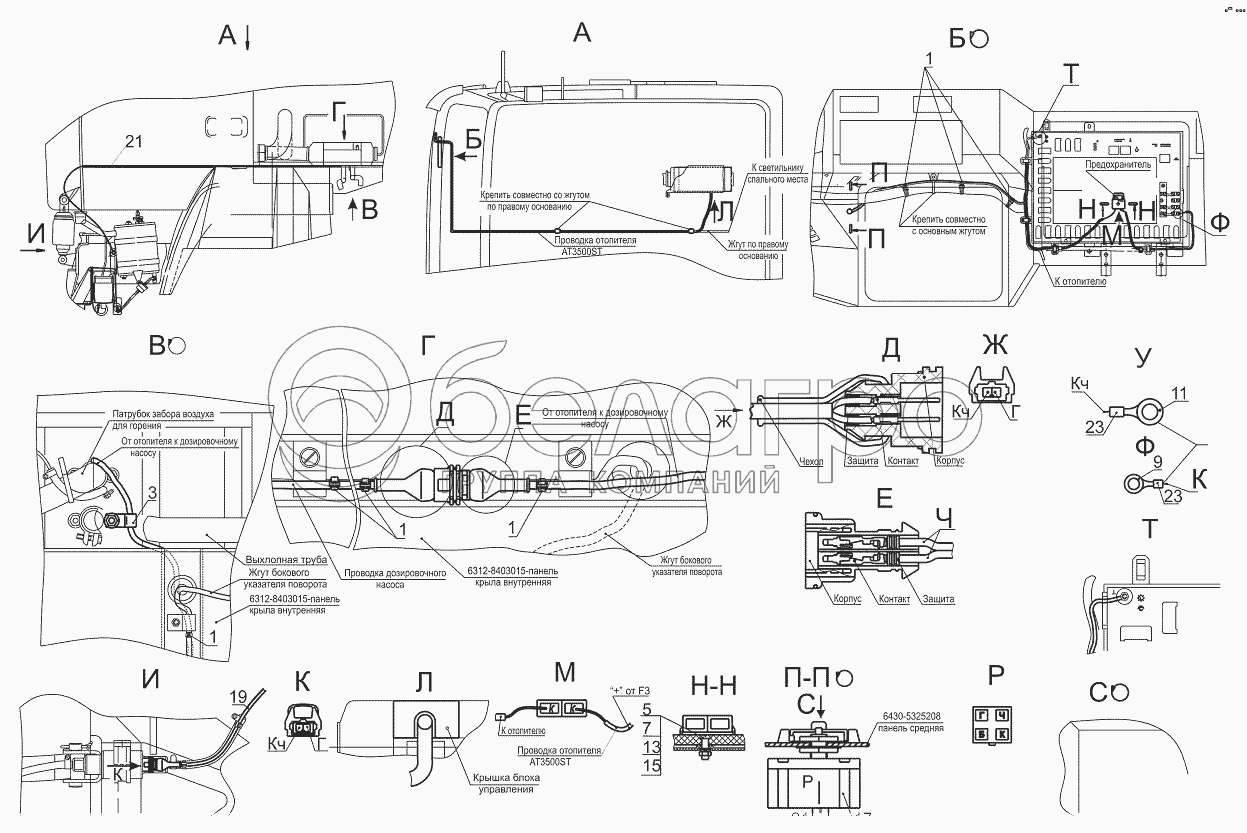 Каталог запасных частей к технике: МАЗ-631019. Установка электрооборудования отопителя 6430-3700088-010