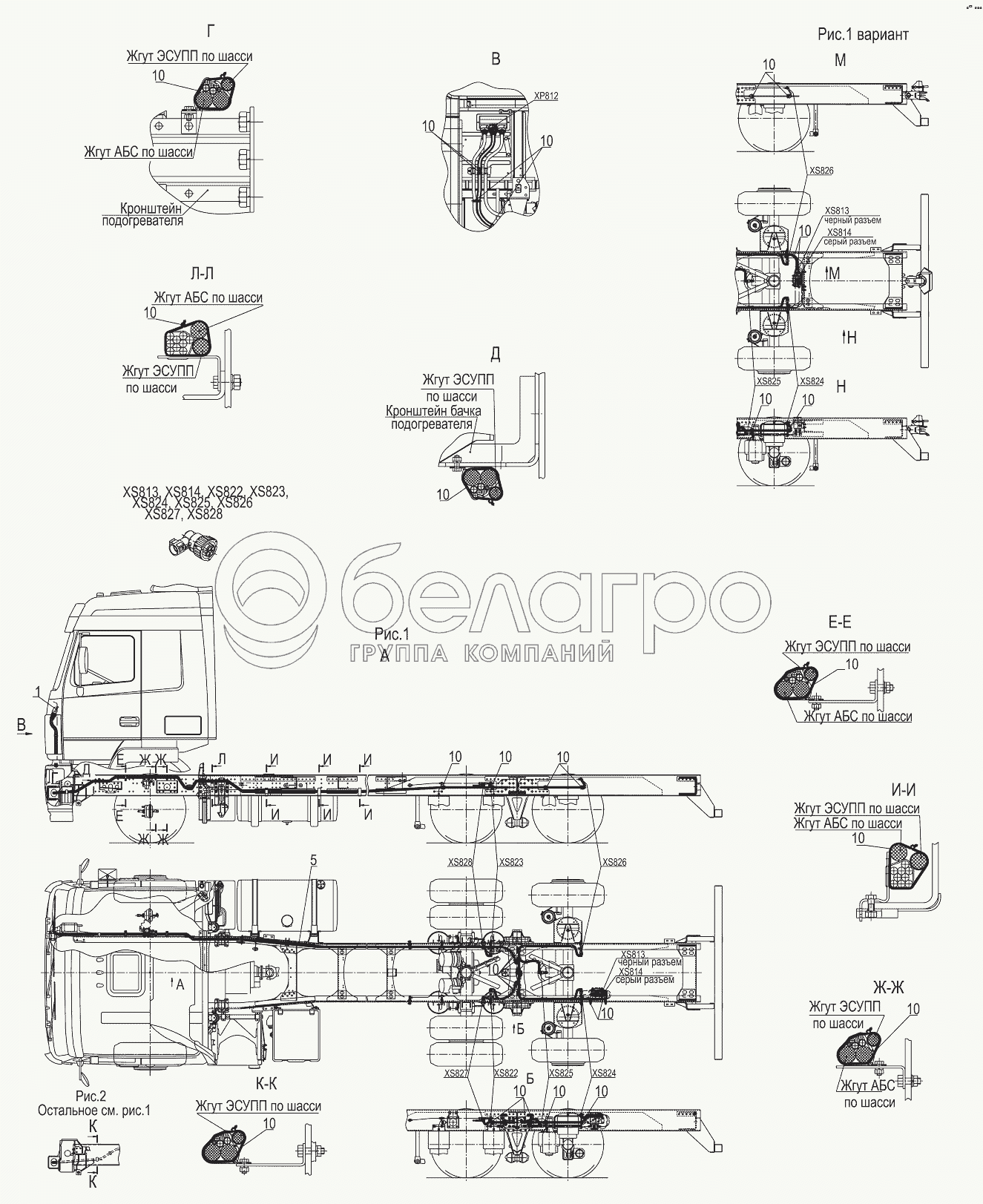 Каталог запасных частей к технике: МАЗ-631019. Установка электрооборудования пневмоподвески 631019-3800050