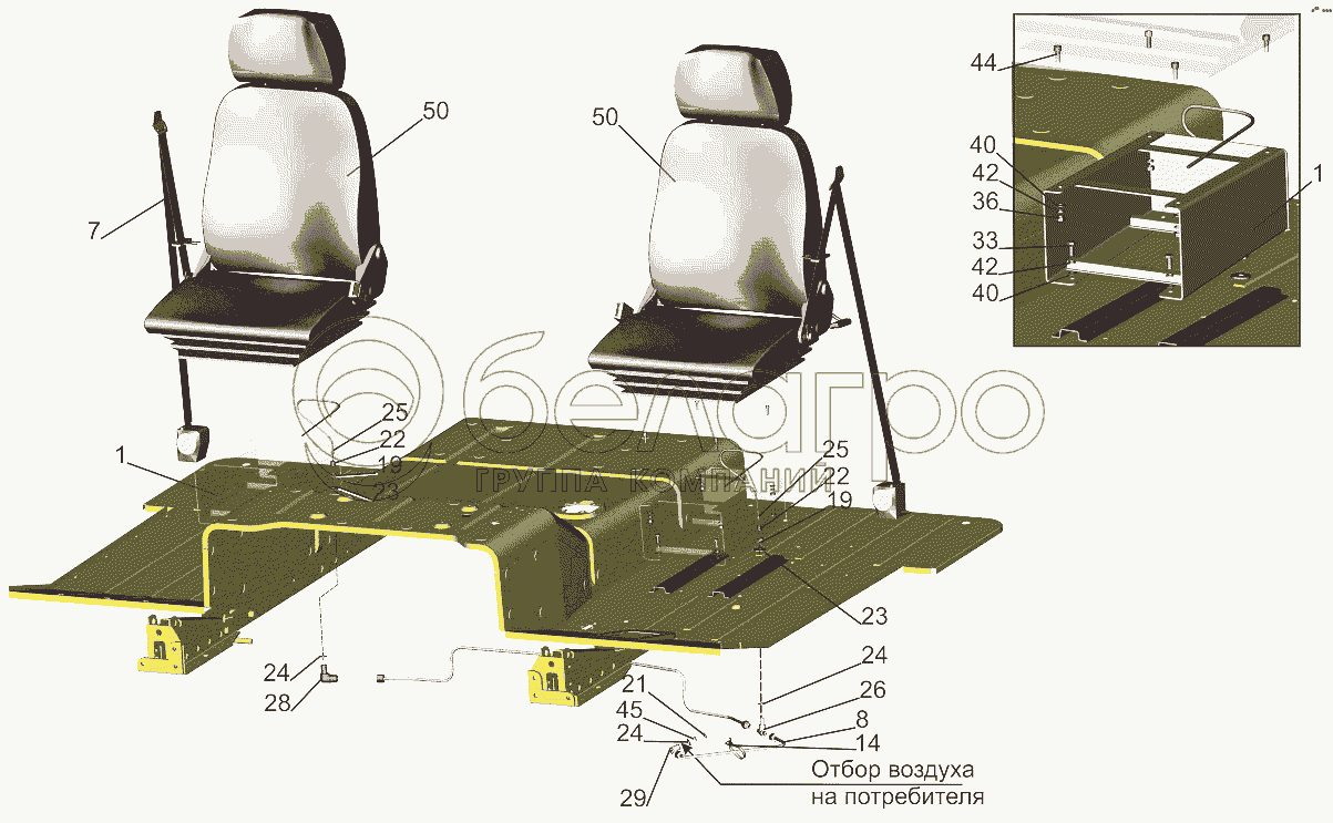Каталог запасных частей к технике: МАЗ-631019. Установка и пневмопитание сидений 544069-6800006