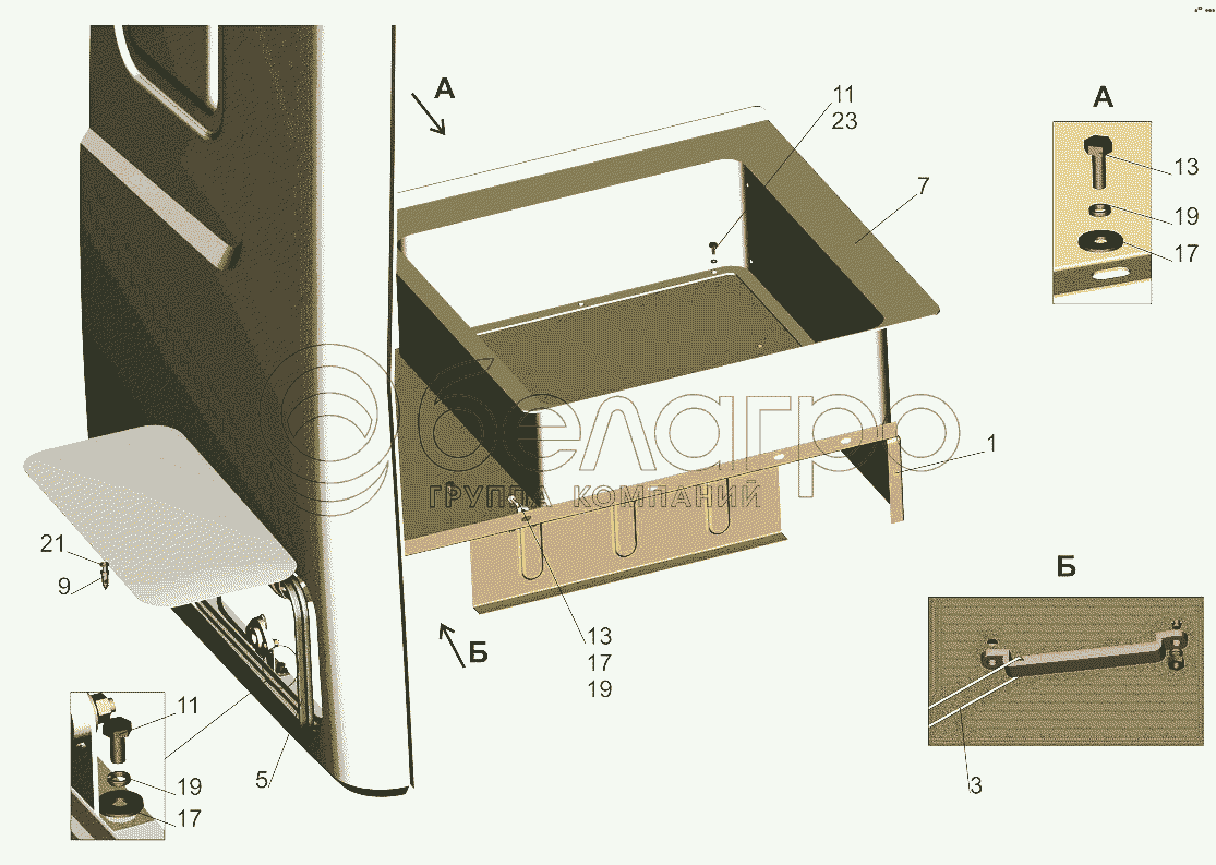 Каталог запасных частей к технике: МАЗ-631019. Установка инструментального ящика 6430-5000115-020