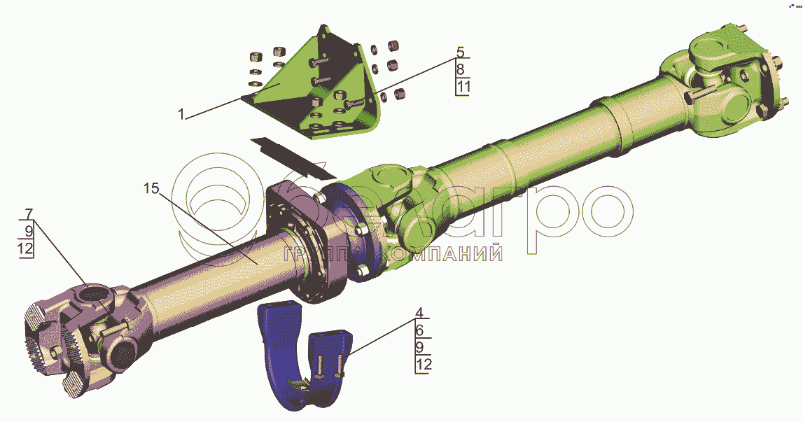 Каталог запасных частей к технике: МАЗ-631019. Установка карданной передачи 631019-2200000-010