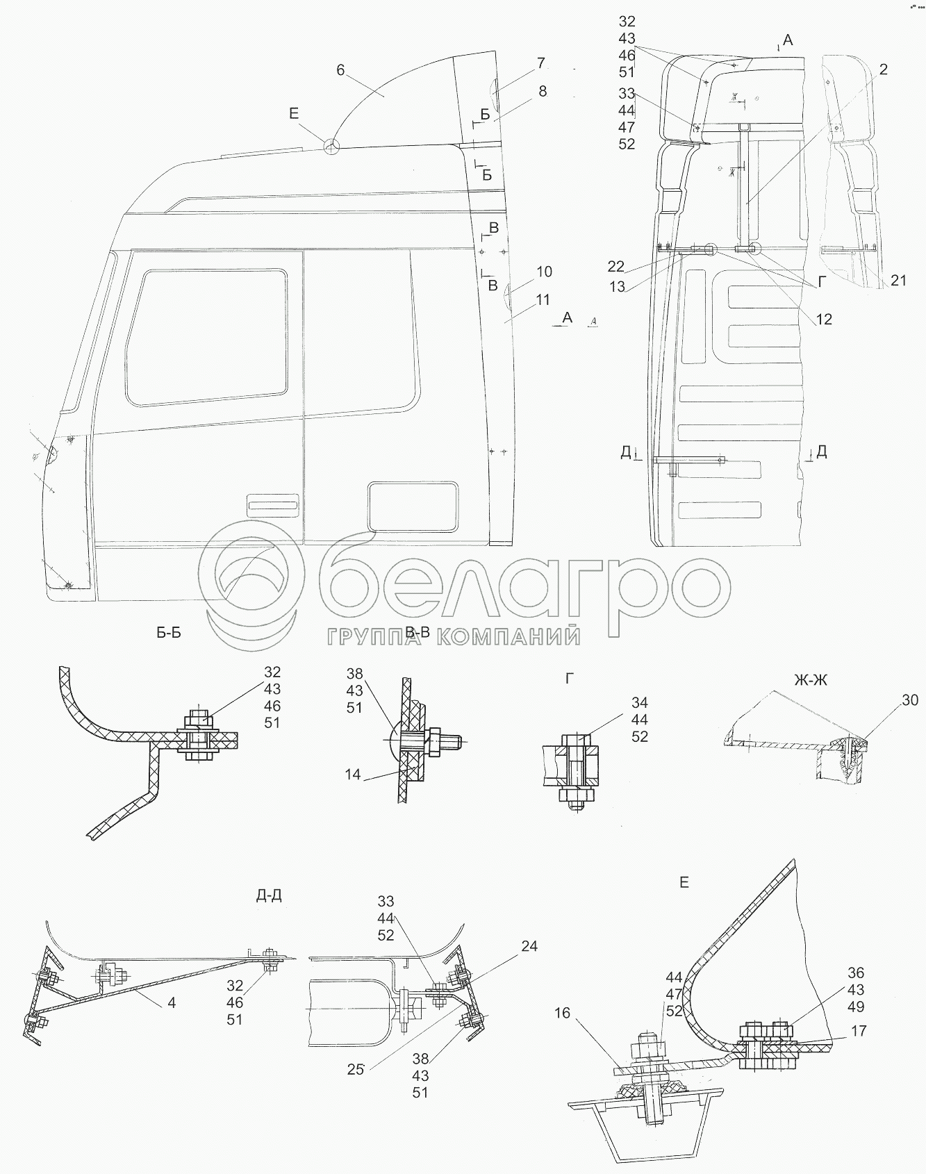 Каталог запасных частей к технике: МАЗ-631019. Установка обтекателей 6312-8000014
