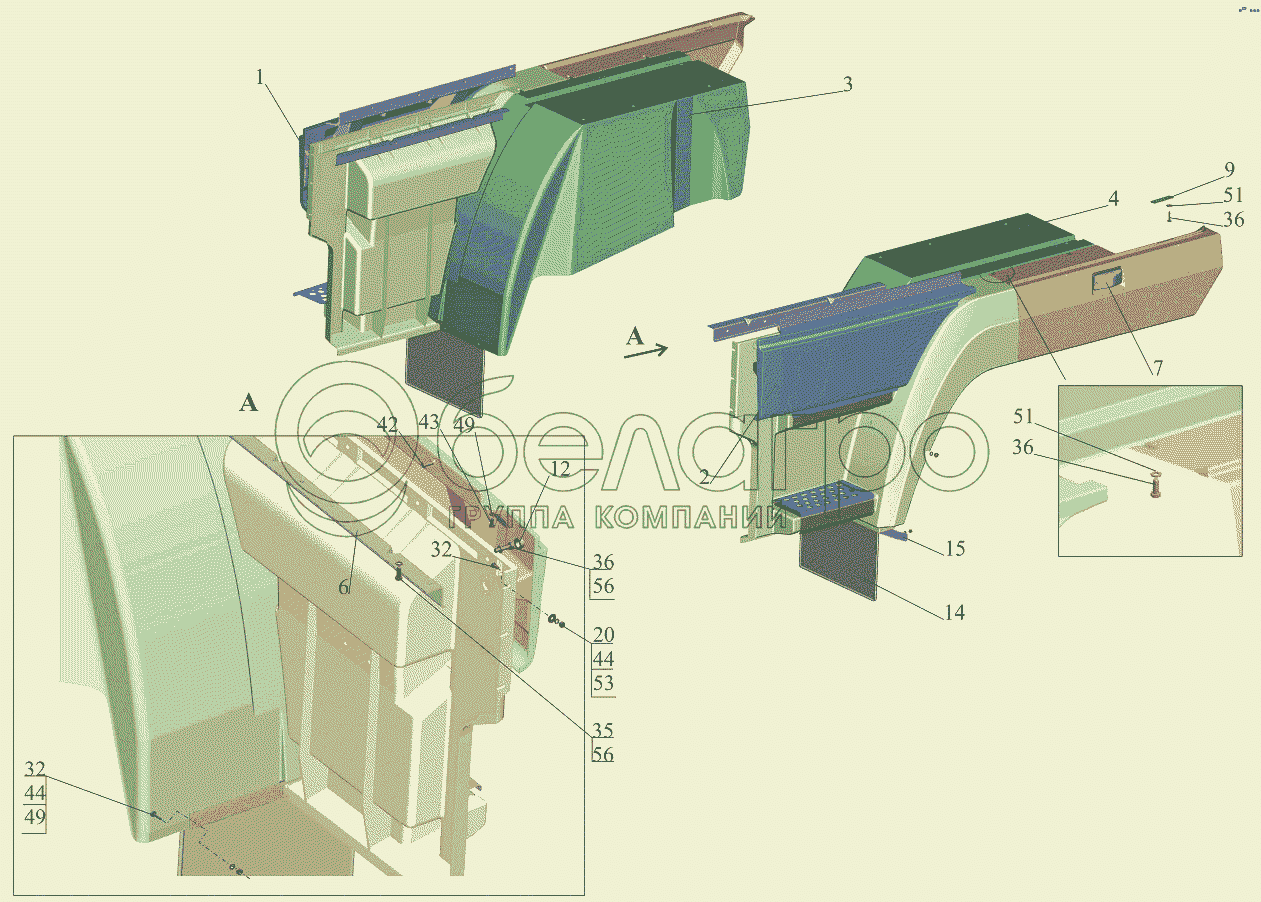 Каталог запасных частей к технике: МАЗ-631019. Установка оперения 6431-8400020-010