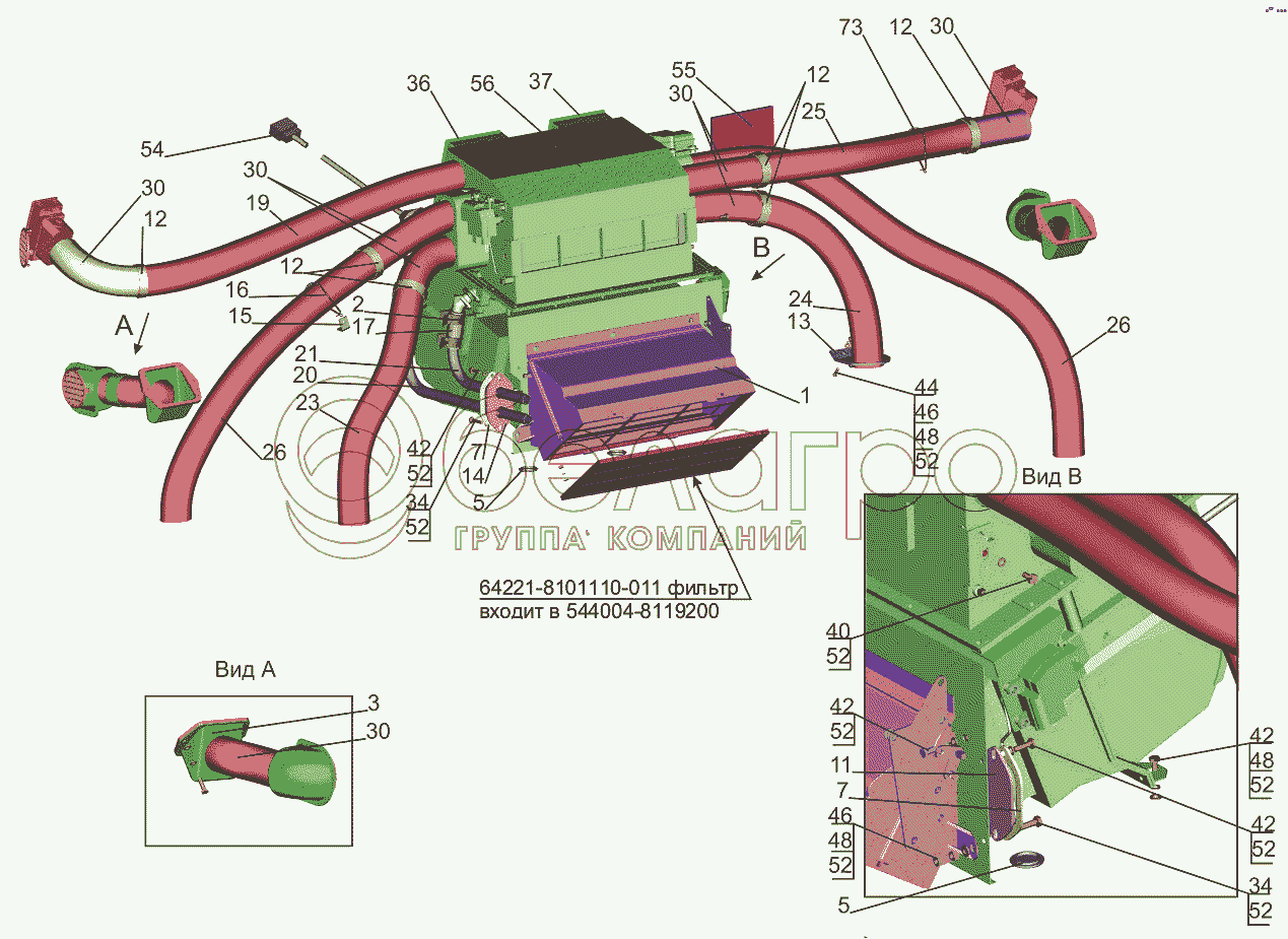 Каталог запасных частей к технике: МАЗ-631019. Установка отопителя 631019-8100001