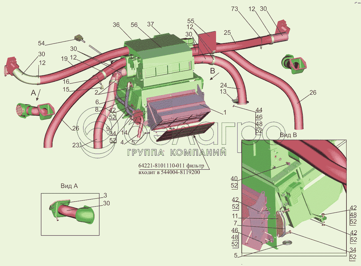 Каталог запасных частей к технике: МАЗ-631019. Установка отопителя 643008-8100001