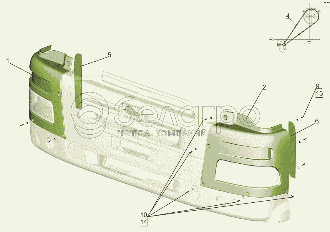 Каталог запасных частей к технике: МАЗ-631019. Установка панелей бампера 643019-2800005