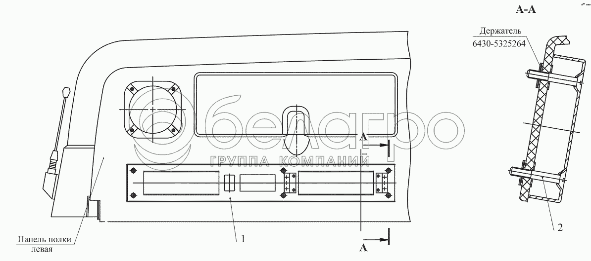 Каталог запасных частей к технике: МАЗ-631019. Установка панели на полке 544019-7901080