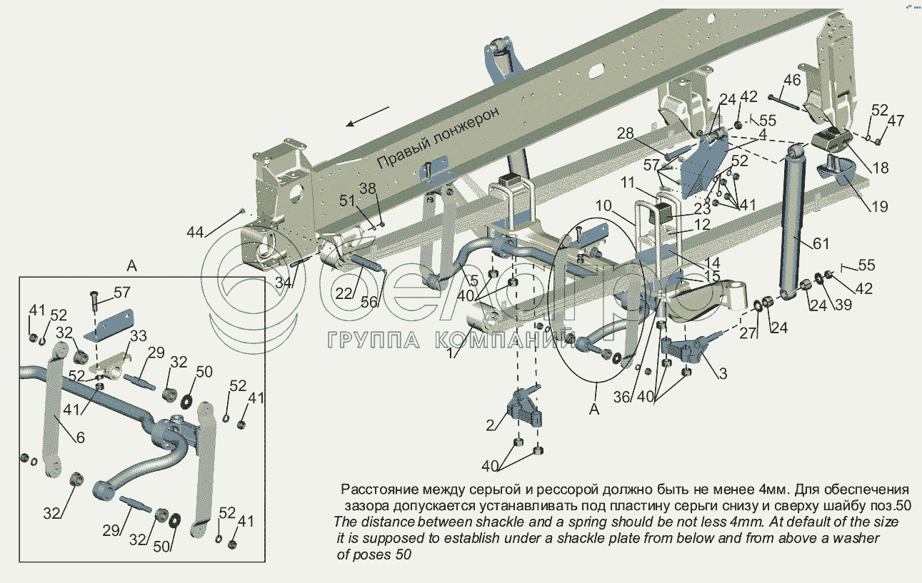 Каталог запасных частей к технике: МАЗ-631019. Установка подвески передней 631019-2900001