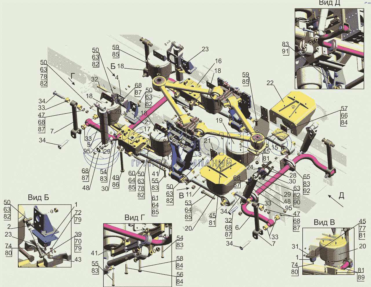 Каталог запасных частей к технике: МАЗ-631019. Установка подвески задней 6310E9-2900002-000