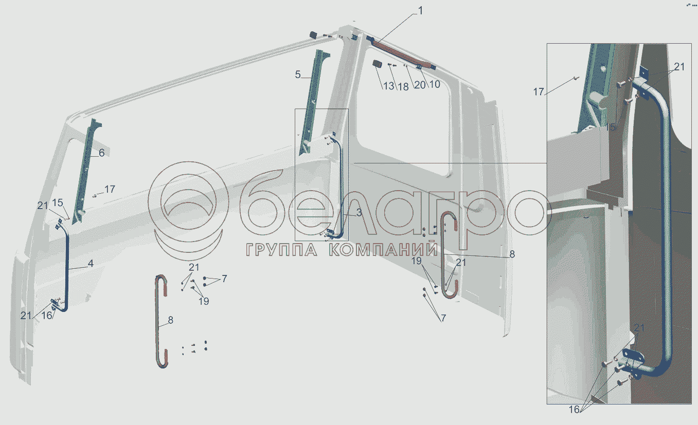 Каталог запасных частей к технике: МАЗ-631019. Установка поручней в кабине 6430-8200030