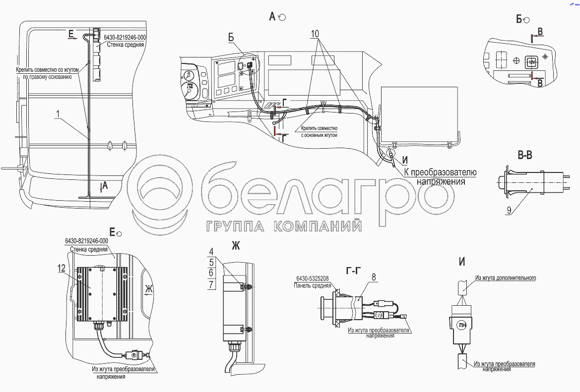 Каталог запасных частей к технике: МАЗ-631019. Установка преобразователя напряжения 6430-3700109