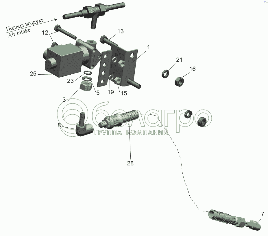 Каталог запасных частей к технике: МАЗ-631019. Установка привода управления блокировкой 631019-2400024