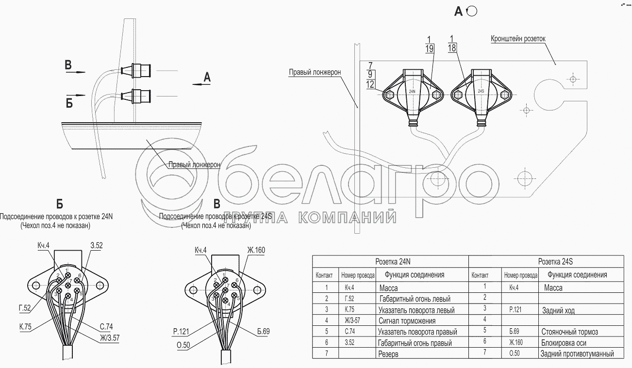 Каталог запасных частей к технике: МАЗ-631019. Установка штепсельных розеток 631019-3700015, (-700)