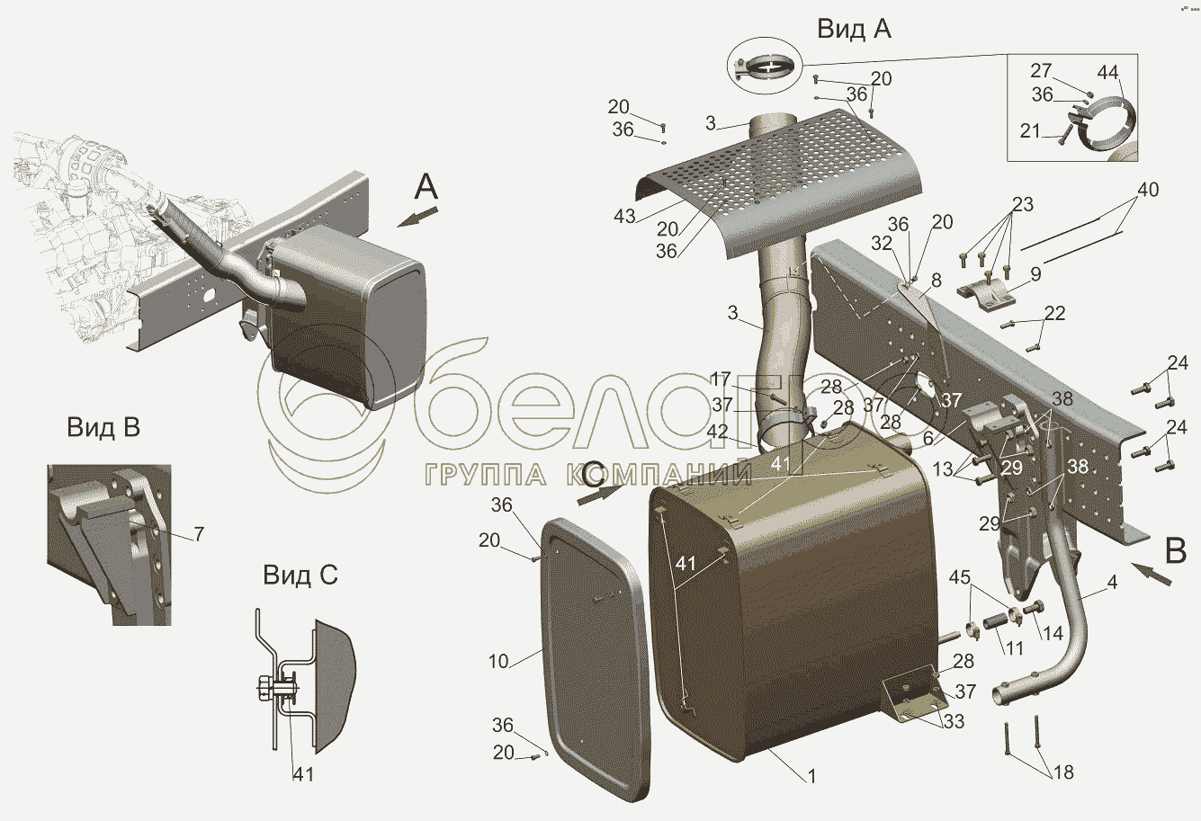 Каталог запасных частей к технике: МАЗ-631019. Установка системы выпуска газов 544018-1200001