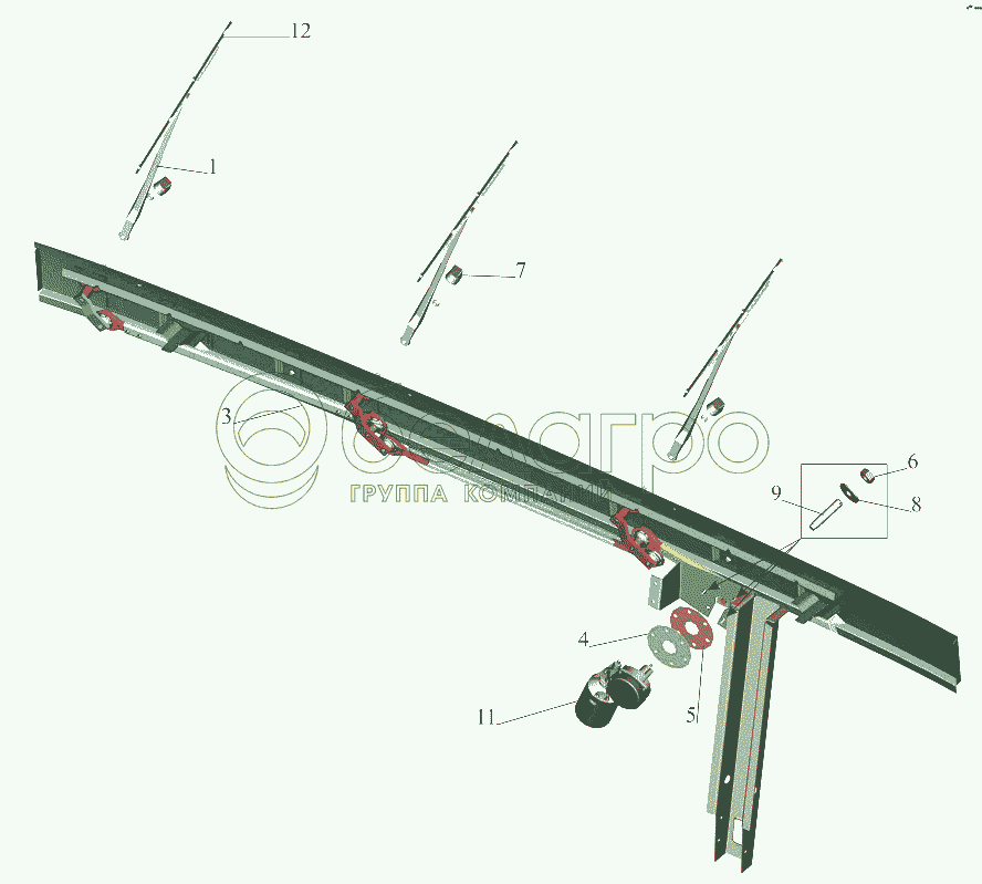 Каталог запасных частей к технике: МАЗ-631019. Установка стеклоочистителя 6430-3700041-001