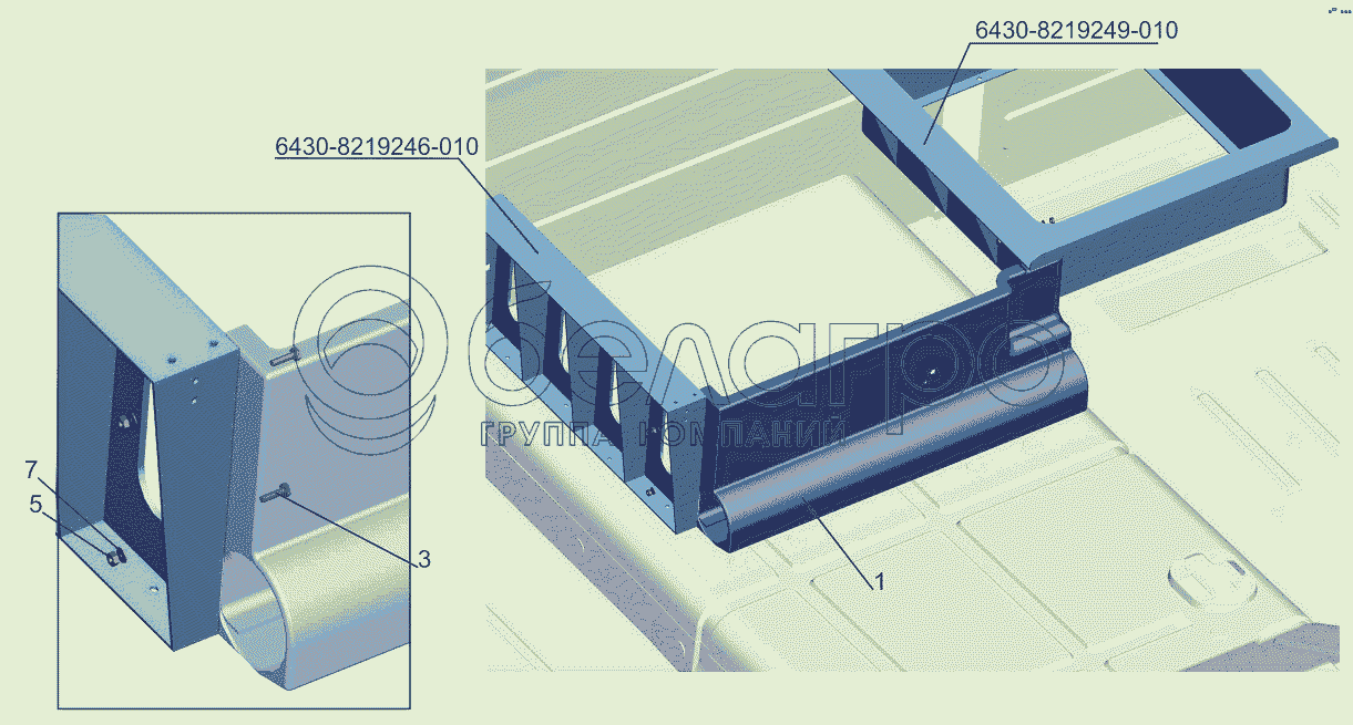 Каталог запасных частей к технике: МАЗ-631019. Установка стенки 6430-8200041