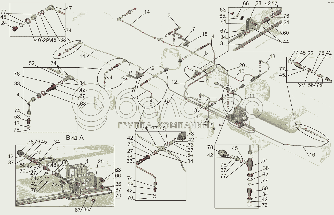 Каталог запасных частей к технике: МАЗ-631019. Установка трубопроводов ECAS 631019-2900018