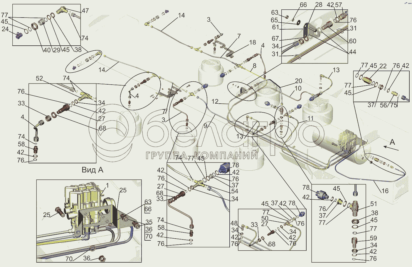 Каталог запасных частей к технике: МАЗ-631019. Установка трубопроводов ECAS 6310E9-2900018-000