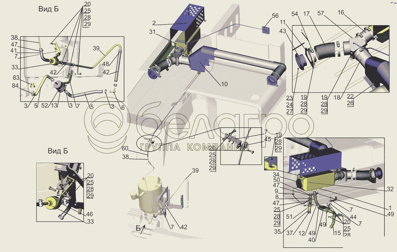 Каталог запасных частей к технике: МАЗ-631019. Установка воздушного отопителя 6430-8100002