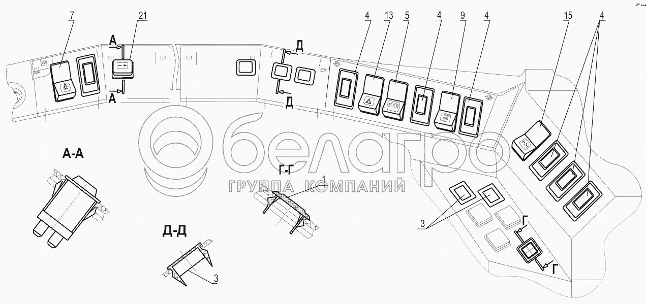 Каталог запасных частей к технике: МАЗ-631019. Установка выключателей 631019-3700018