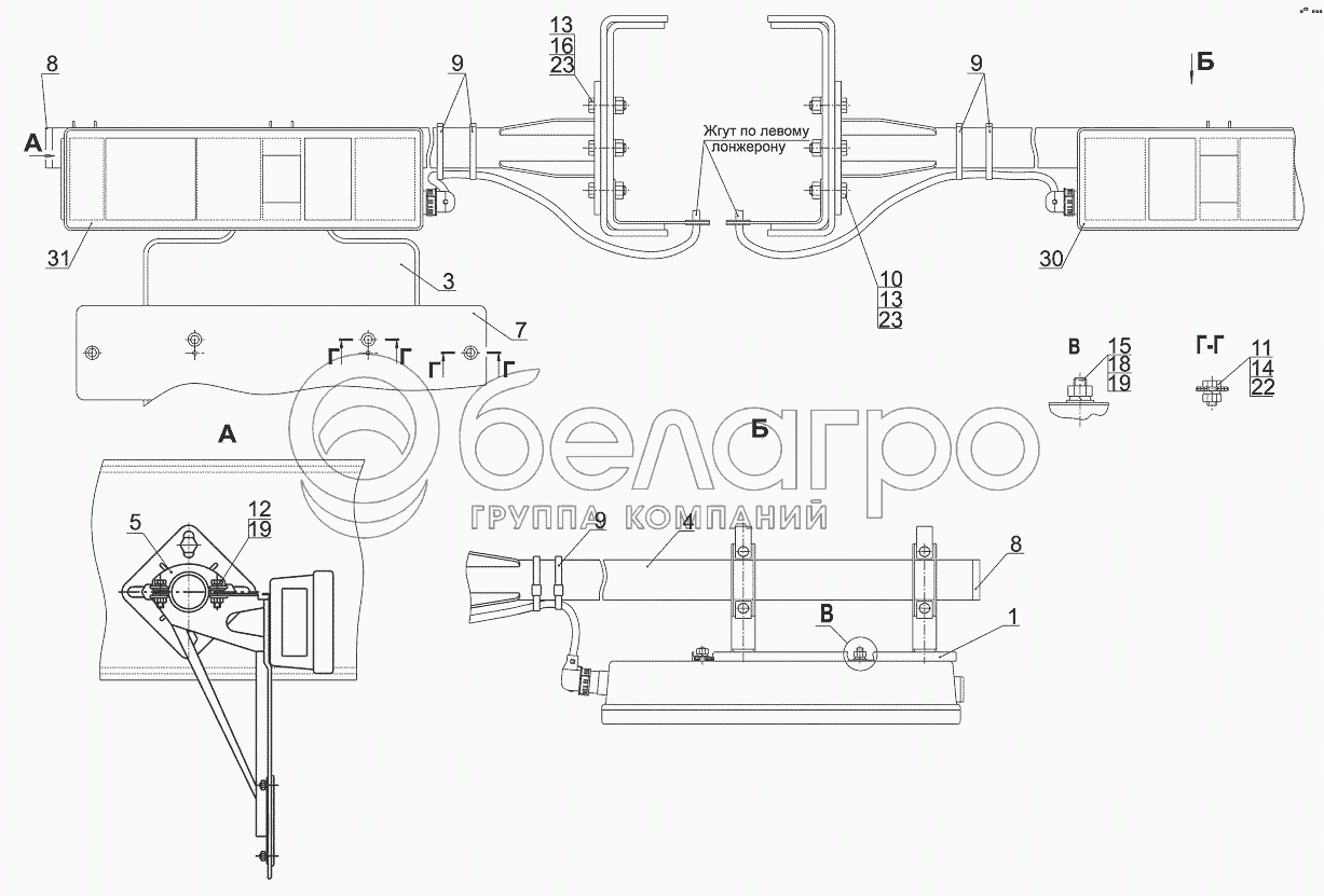 Каталог запасных частей к технике: МАЗ-631019. Установка задних фонарей 6501А5-3700009