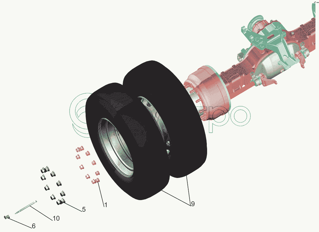 Каталог запасных частей к технике: МАЗ-631019. Установка задних колес 534009-3100002