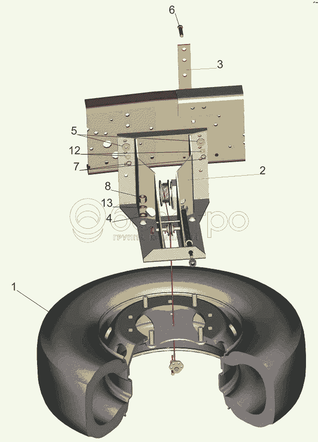 Каталог запасных частей к технике: МАЗ-631019. Установка запасного колеса 6310Е9-3100001