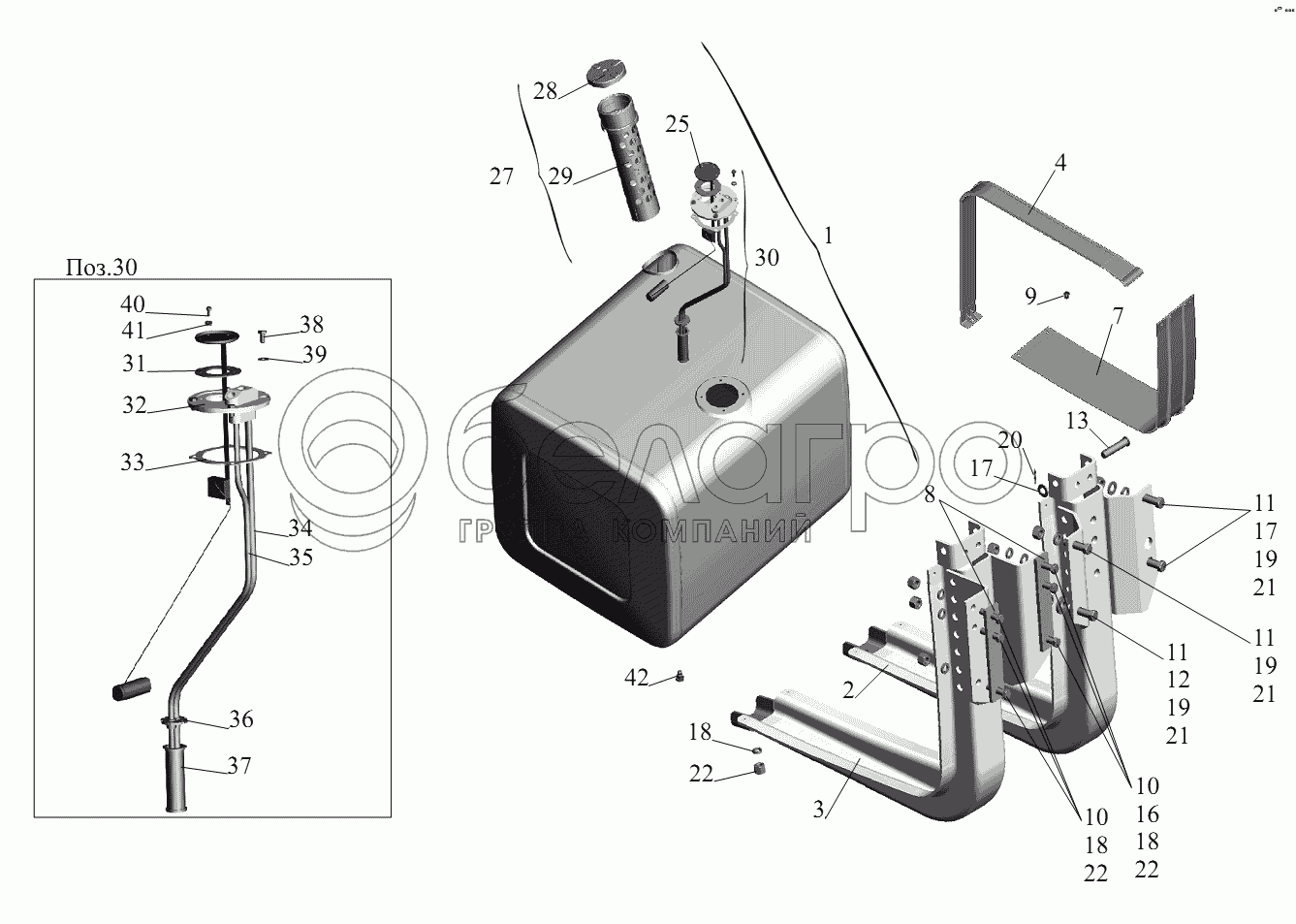 Каталог запасных частей к технике: МАЗ-631236. Крепление топливного бака 555035-1101002