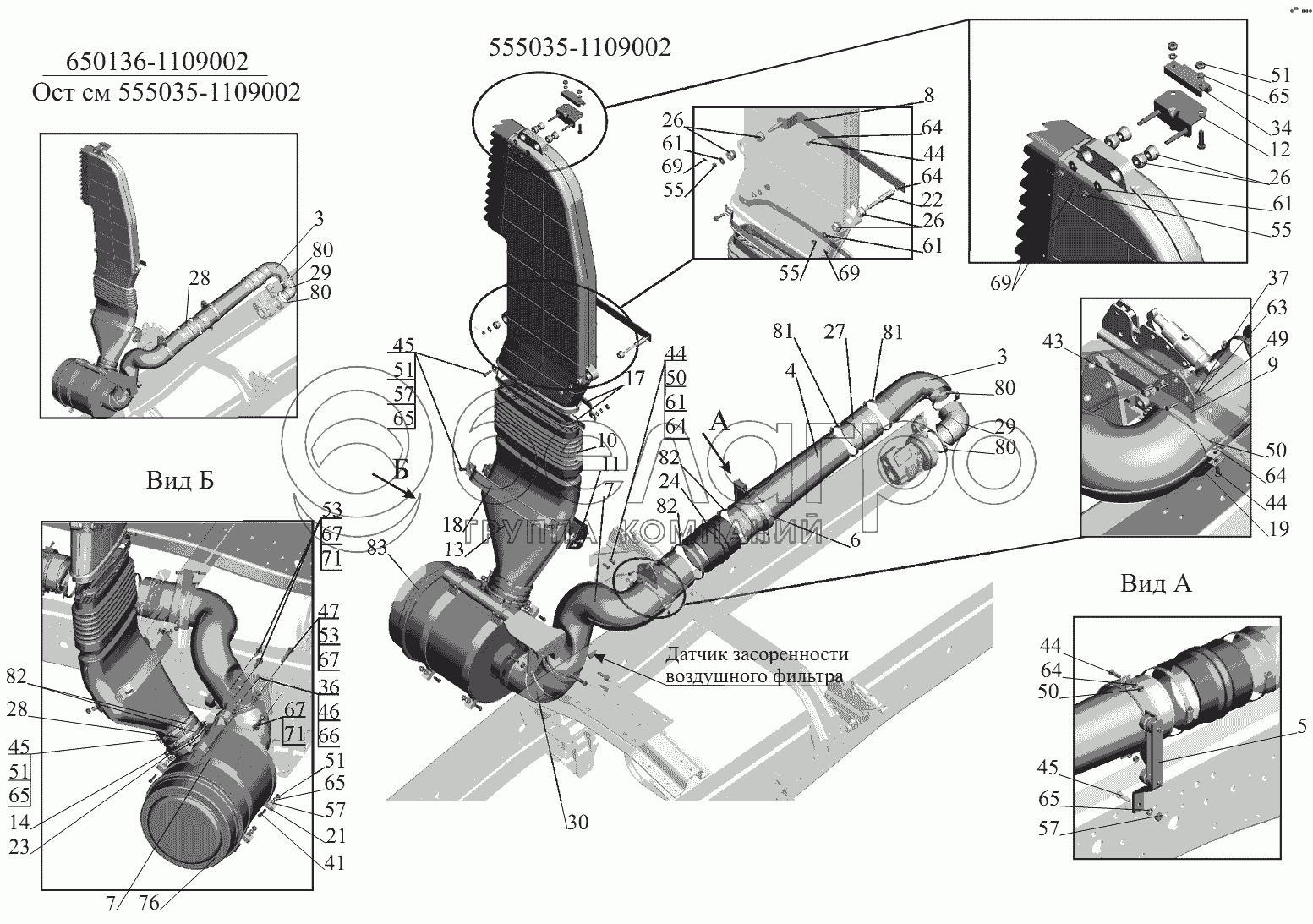 Каталог запасных частей к технике: МАЗ-631236. Крепление воздушного фильтра
