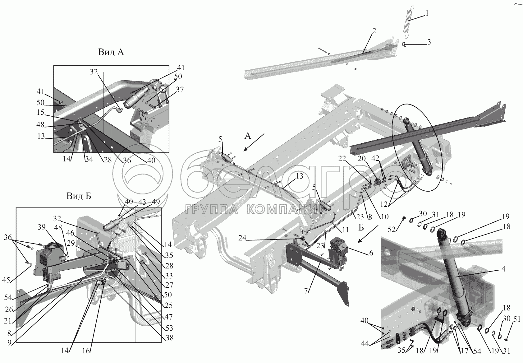 Каталог запасных частей к технике: МАЗ-631236. Механизм подъема кабины