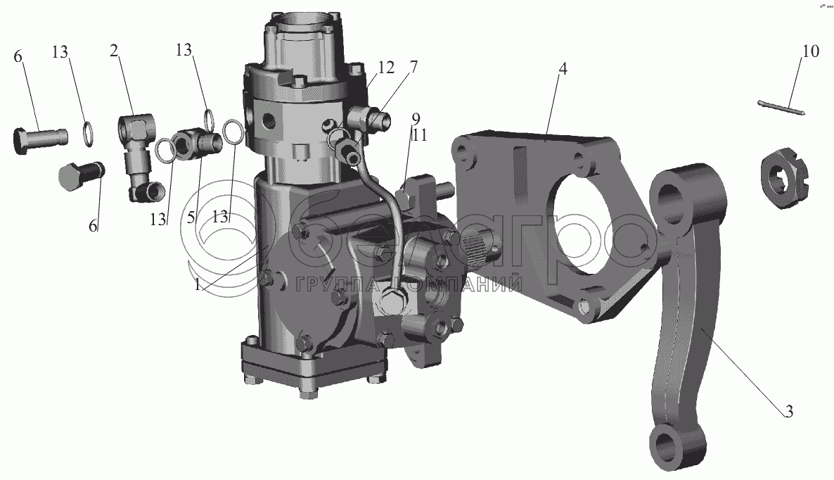 Каталог запасных частей к технике: МАЗ-631236. Механизм рулевой с кронштейном 6418-3400006