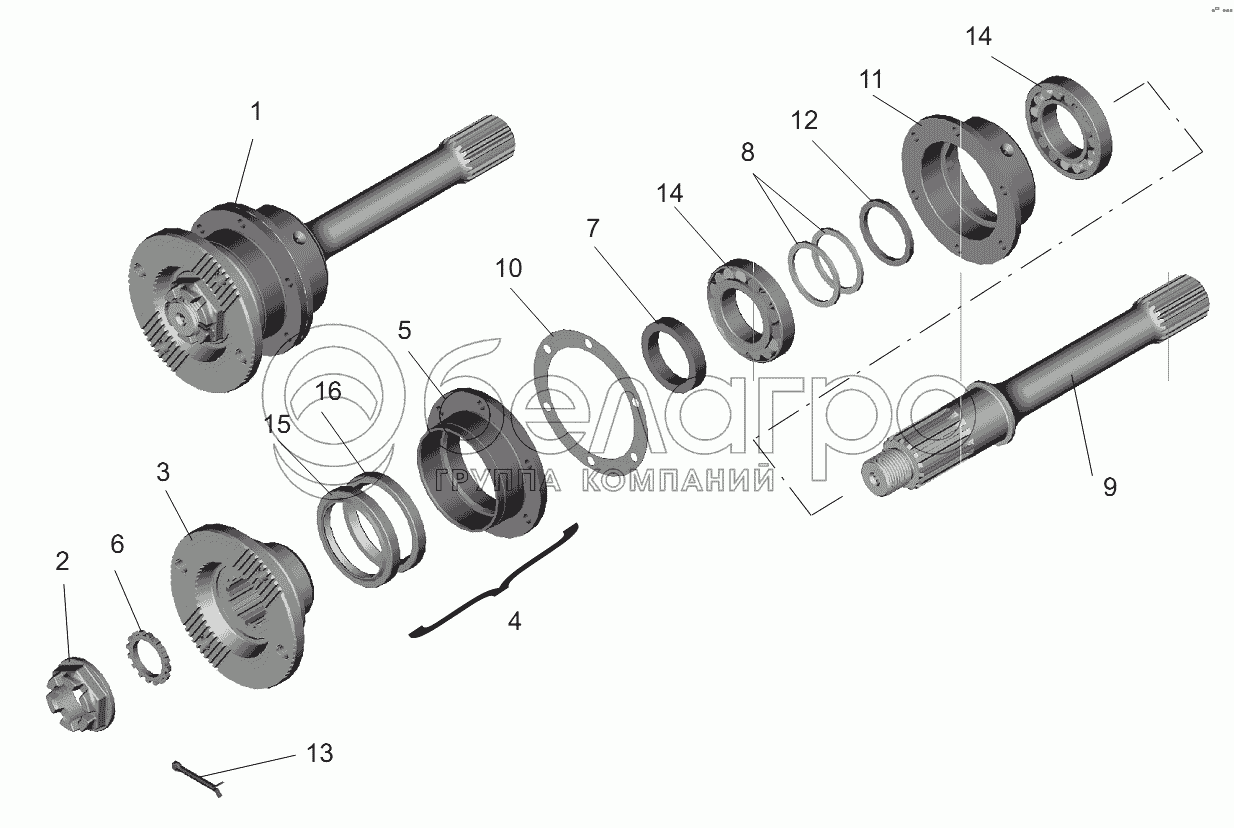 Каталог запасных частей к технике: МАЗ-631236. Мост средний. Вал задний
