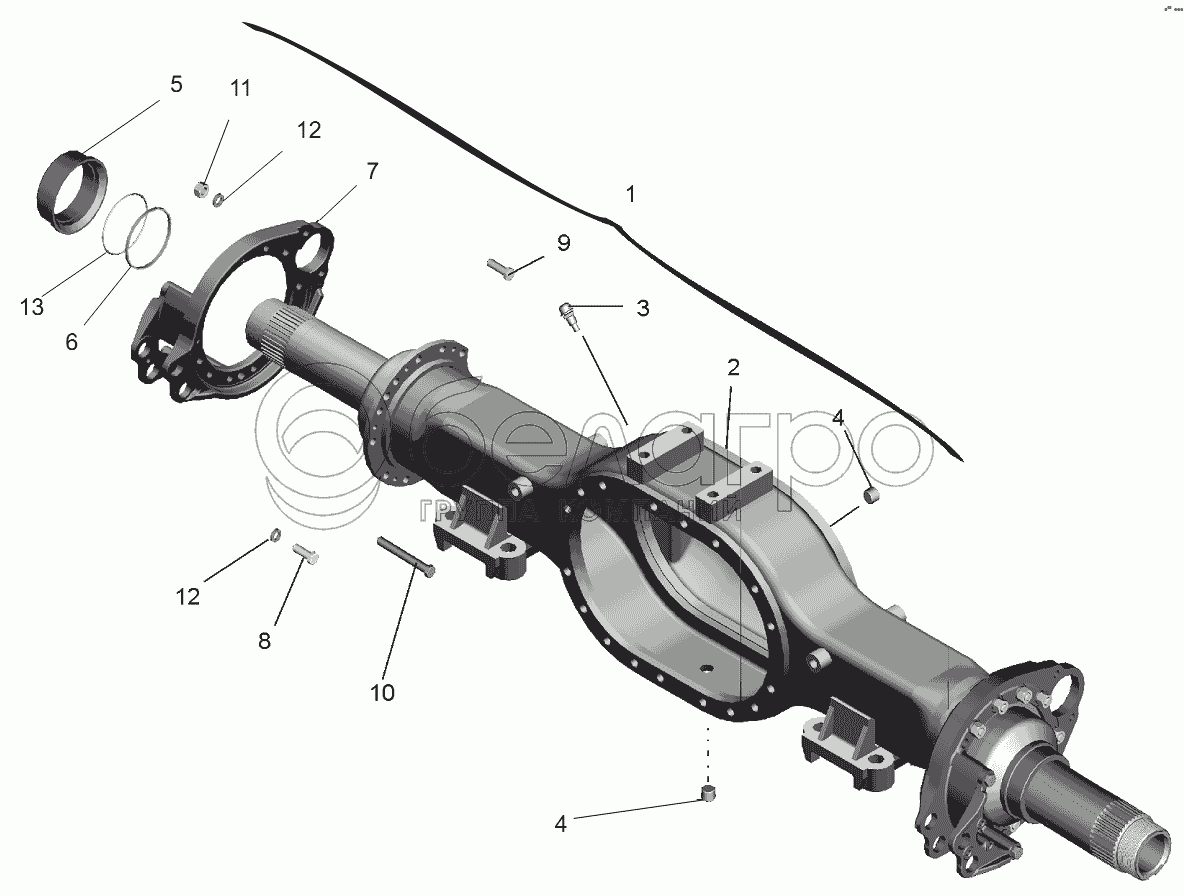 Каталог запасных частей к технике: МАЗ-631236. Мост задний. Картер моста