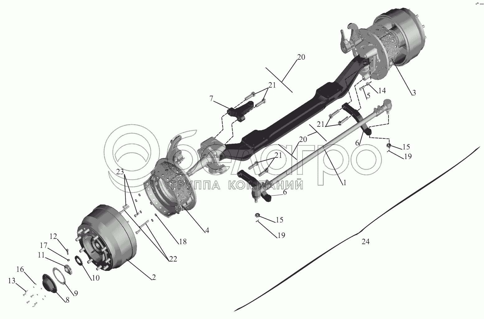 Каталог запасных частей к технике: МАЗ-631236. Передняя ось 6430-3000015