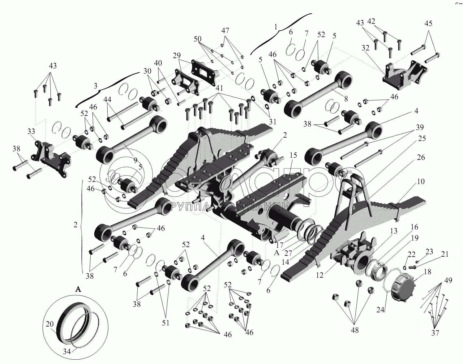 Каталог запасных частей к технике: МАЗ-631236. Подвеска балансирная