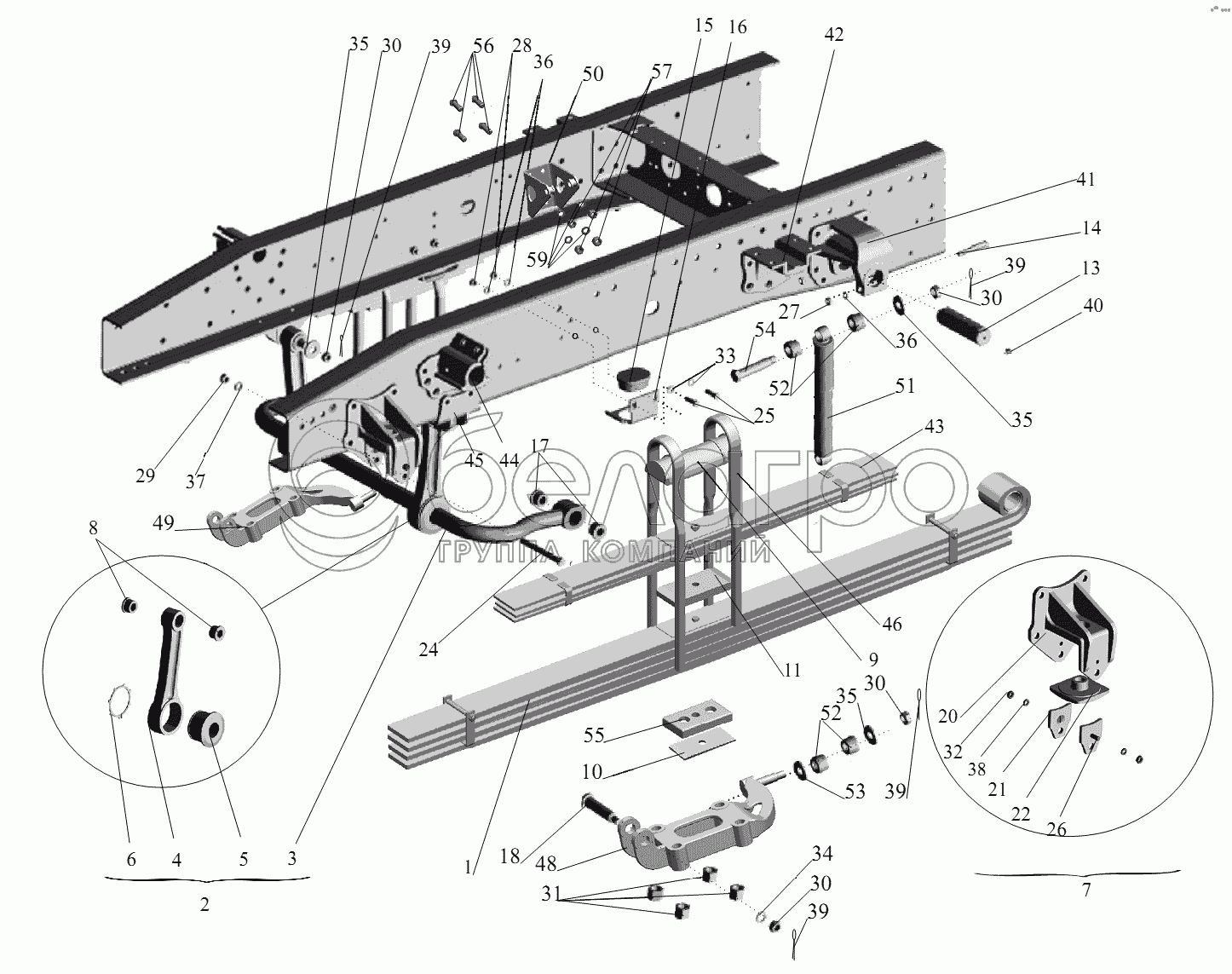 Каталог запасных частей к технике: МАЗ-631236. Подвеска задняя 5440-2900002