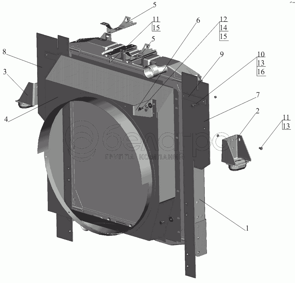 Каталог запасных частей к технике: МАЗ-631236. Радиатор с кожухом 555035-1301009