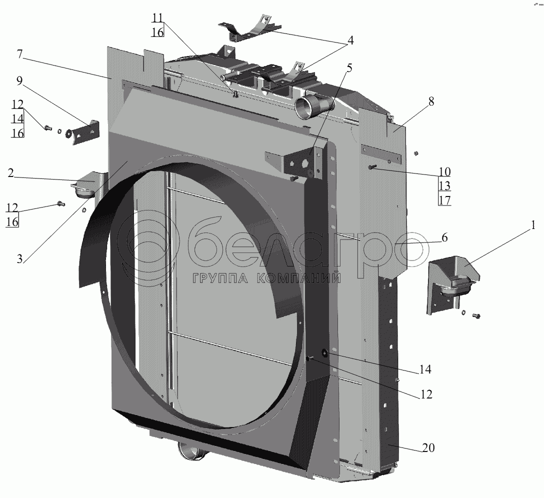 Каталог запасных частей к технике: МАЗ-631236. Радиатор с кожухом 631236-1301009