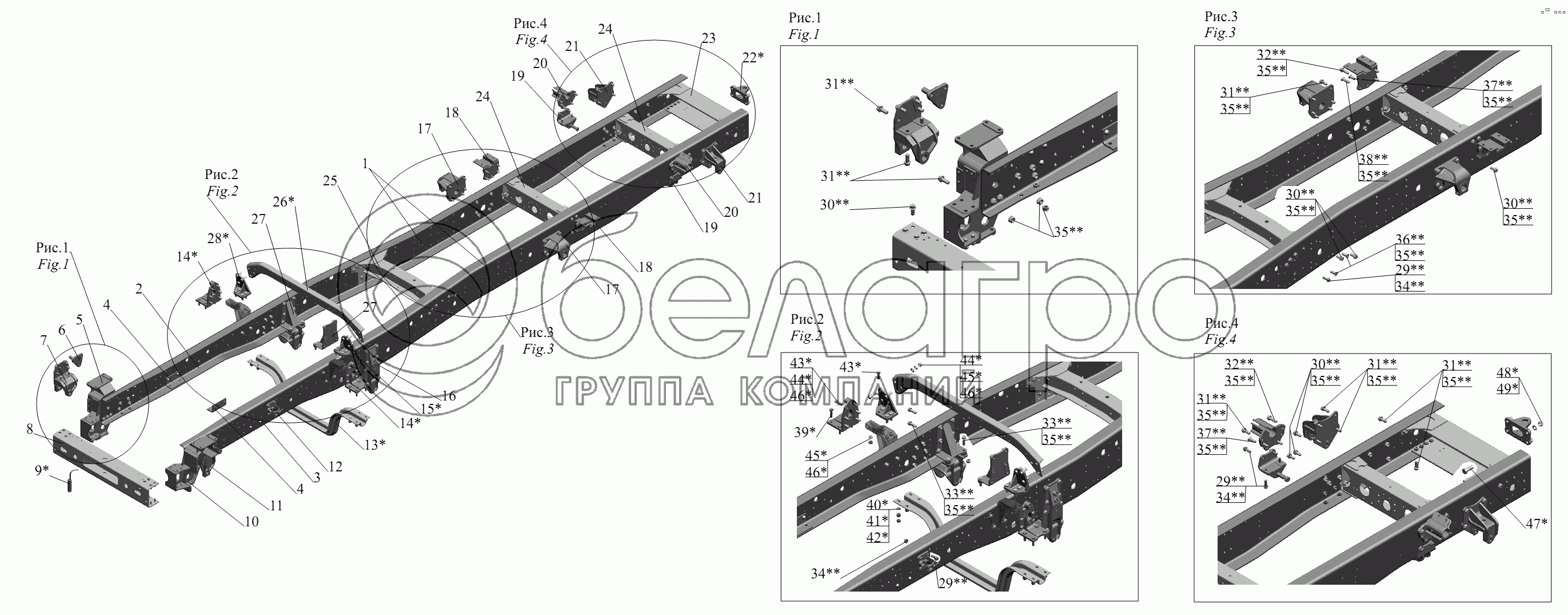 Каталог запасных частей к технике: МАЗ-631236. Рама 534035-2801002
