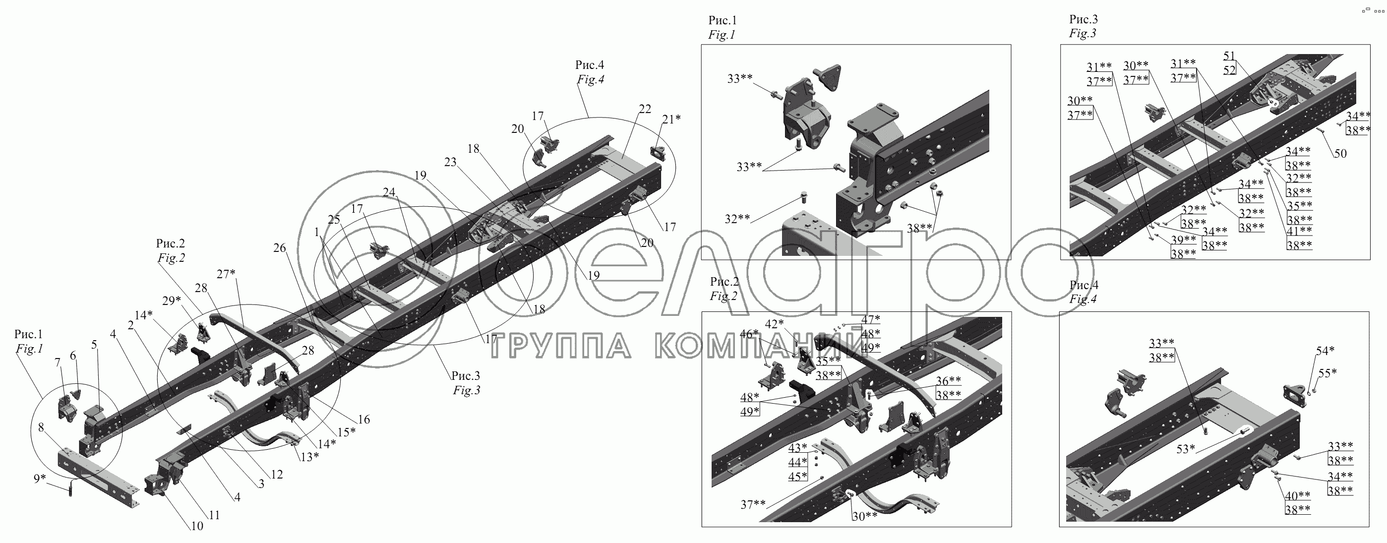 Каталог запасных частей к технике: МАЗ-631236. Рама 631236-2801002