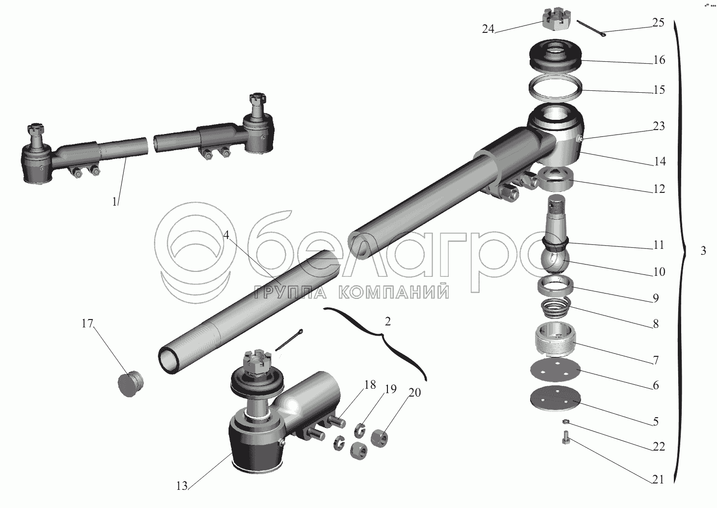 Каталог запасных частей к технике: МАЗ-631236. Тяга поперечная рулевая 64221-3003052