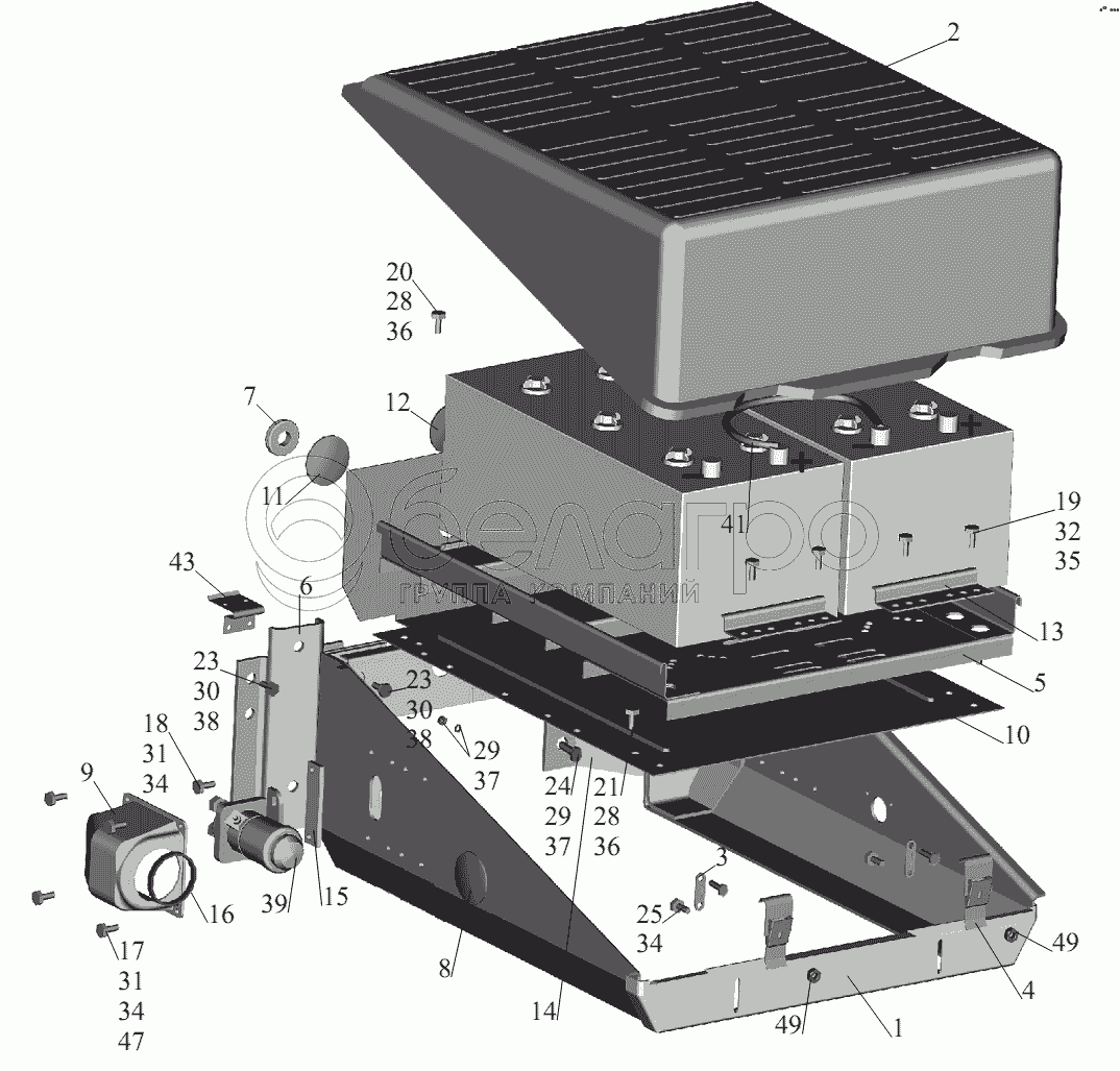Каталог запасных частей к технике: МАЗ-631236. Установка аккумуляторных батарей