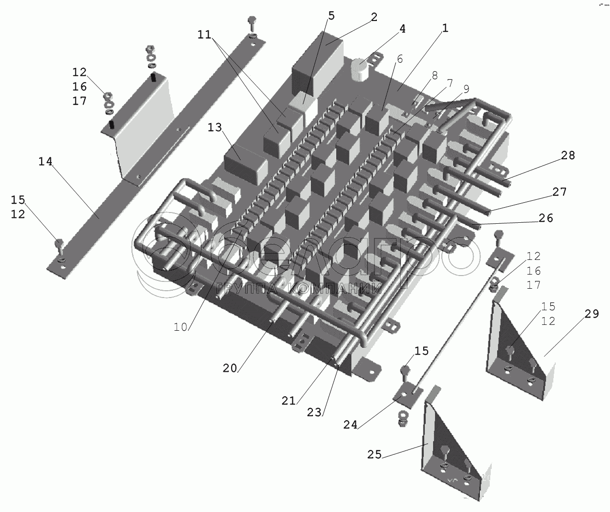 Каталог запасных частей к технике: МАЗ-631236. Установка блока коммутационной аппаратуры