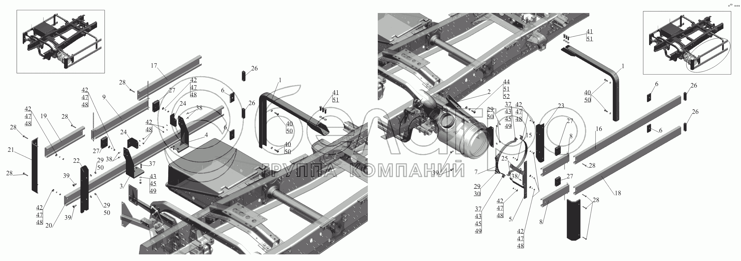 Каталог запасных частей к технике: МАЗ-631236. Установка бокового ограждения 555035-2800040