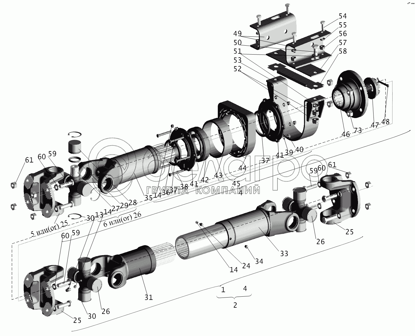 Каталог запасных частей к технике: МАЗ-631236. Установка карданных передач МАЗ-534035, 555035